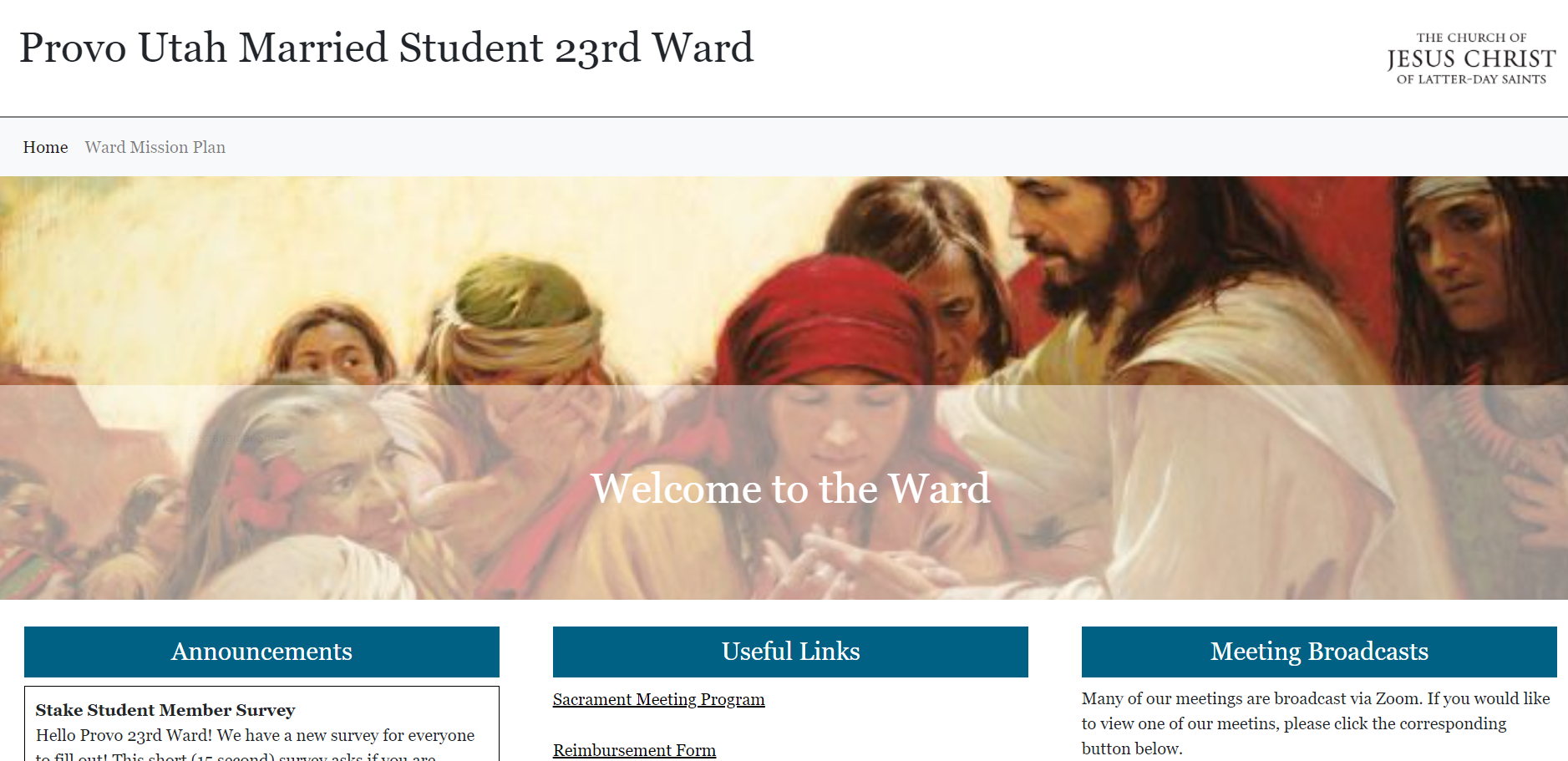 In a volunteer effort, I originally developed a webpage used by a local ecclesiastical group that I previously attended. This webpage is now managed by current patrons of the congregation and supplements and supports the needs and functions of that congregation. The site is currently hosted at https://provo23rdward.github.io
