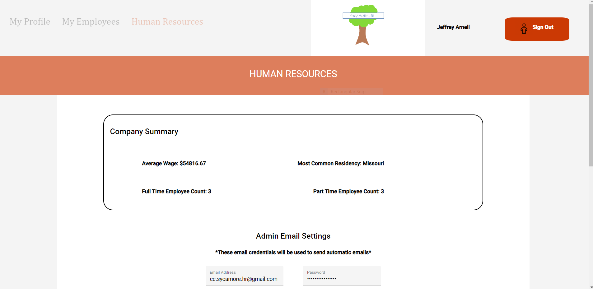 In fall of 2022, I developed a simple HR management system. This application supports a managerial heirarchy, several different user views depending on department and managerial assignment, and automatic emails used to notify users of changes to their accounts. This is hosted at https://sycamorehr.jeffreyarnell.com